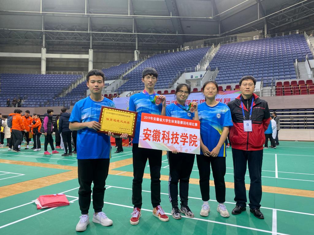 为备战本次比赛和锻炼队伍,11月9日,我校毕业生校友翟衡、王正兴与在校学子杨高峰、沈中欣、陈凯琴、王璐平等组成安徽科技学院校友羽毛球俱乐部参加了2019年中国羽毛球协会业余俱乐部联赛大区赛,取得了第五名的好成绩。