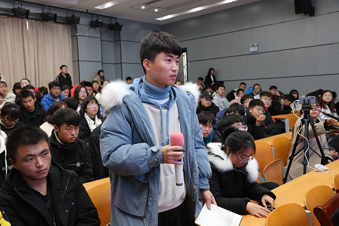 互动环节,同学们积极举手提问,分别从人才培养理念、学科专业建设、硬件设施改善、大学文化建设、校园文明安全、后勤保障与服务质量提升等事关学校建设发展、事关学生切身利益的热点问题踊跃献言建策。