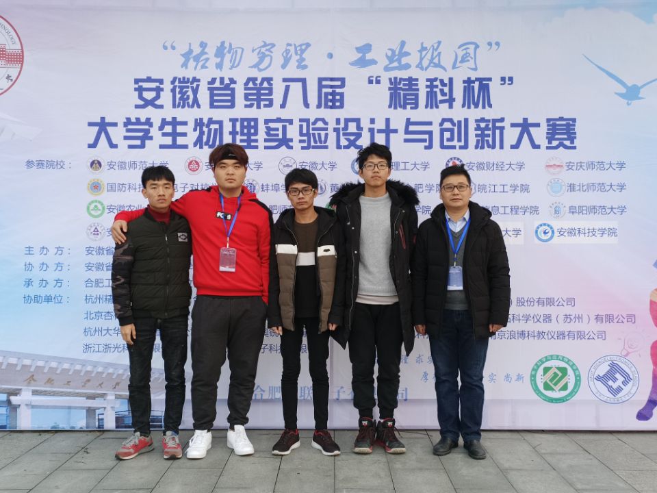 11月30日至12月1日,由安徽省物理学会主办,安徽省高校物理实验教学协作组协办,合肥工业大学承办的“精科杯”安徽省第八届大学生物理实验设计与创新大赛在合肥工业大学成功举办。我校及合肥工业大学、安徽大学、安徽工业大学、安徽师范大学等全省25所本科院校的100名选手参加了大赛。我校选派的4名参赛选手在比赛中表现突出,王微星、屈厚君同学荣获二等奖,夏敏豪、李嘉豪同学荣获三等奖。在创新组比赛中,我校提交的创新实验作品《椭圆偏振光椭圆轨迹的描绘》荣获三等奖。