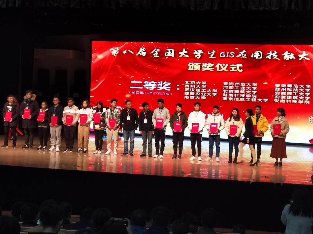 11月23 日至11月25日,由中国地理信息产业协会、教育部地理科学类专业教学指导委员会、中国地理学会、南京师范大学主办,中国地理信息产业协会教育与科普工作委员会、安徽师范大学地理与旅游学院、资源环境与地理信息工程安徽省工程技术研究中心、江淮流域地表过程与区域响应安徽省重点实验室承办的第八届全国大学生GIS应用技能大赛在安徽师范大学召开。我校资源与环境学院地理信息科学等相关专业师生参加此次比赛。