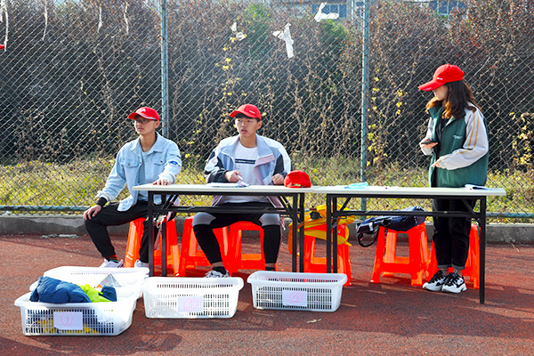 我校第29届田径运动会正如火如荼地进行着。竞技场上,人们的聚焦点大多是奋勇拼搏的运动健儿,而在他们的背后,有这样一群可爱的人,用辛勤的汗水,换来运动会的顺利进行。