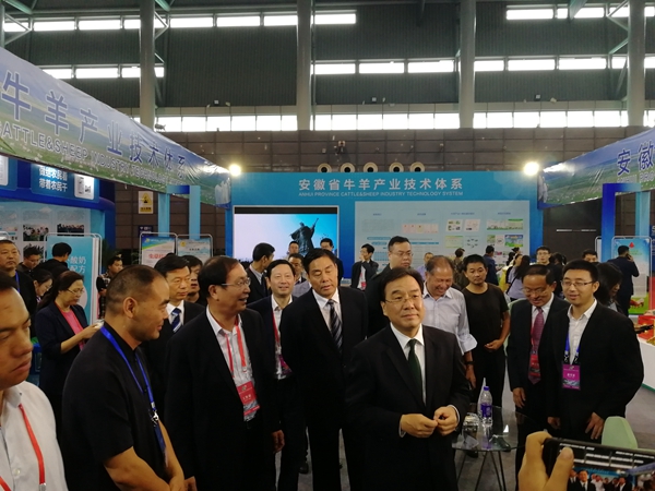 10月11-13日,中国安徽名优农产品暨农业产业化交易会在合肥滨湖国际会展中心举行。省委副书记信长星,副省长张曙光等省领导视察了由我校牵头的牛羊产业技术体系科技展厅。他们深入了解近年来我省牛羊产业科技发展情况,并要求农业科技要积极为安徽农民服务,推进我省乡村振兴。