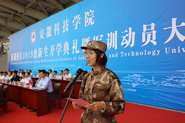 蒋德勤在致辞中向全体2019级新同学的到来表示热烈欢迎和祝贺,也向长期关心、支持我校建设与发展并承担军训任务的解放军陆军装甲兵学院蚌埠校区的各位首长和全体教官表示衷心感谢,简要介绍了我校办学历程以及取得的成就。他指出,学校先后获评为农业推广硕士专业学位研究生培养单位、国家“卓越工程师教育培养计划”项目高校、全国毕业生就业50所典型经验高校、全国大学生创新创业教育50所典型经验高校、全国高校实践育人创新创业基地,2017年我校又成功获批为省应用型高水平大学建设高校,跻身安徽省一流大学行列,时至今日,已形成“一校两区、重点各异、优势互补、协调发展”的办学格局。