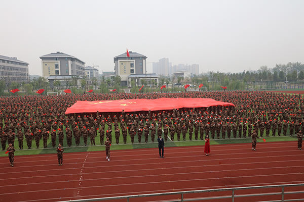 韦文联作军训动员讲话。他指出,今年是新中国成立70周年,在这样的背景下举行新生军训,意义显得尤为重大和特殊。开展新生军训是学校响应党的号召,落实兵役法、国防教育法的实际行动,也是学校坚持立德树人,开展国防教育,培养德智体美劳全面发展社会主义建设者和接班人的重要形式,同时也是同学们大学学习、生活的必要环节和必修课程。韦文联要求,要端正态度,积极投入军事训练,克服怕苦怕累的畏难情绪,以饱满的政治热情、高昂的精神状态积极投入到军训中来,出色完成训练任务。要严明纪律,锤炼过硬军事作风,以一名军人的标准要求自己,用铁一般的纪律磨砺品质作风,用钢一般的担当扛起新时代青年的历史使命。要通力协作,圆满完成军训任务,承训教官要严格执教、科学执教、文明执教,把部队的光荣传统、过硬作风传给同学们;各有关部门要加强配合,提升服务意识,努力做好军训期间学生的教育、管理、后勤服务和医疗保障等工作;要及时总结新生军训成果,深化军训改革,创新体制机制,优化条件保障,提高军事课程教学质量,不断提升我校军训工作规范化、科学化水平。