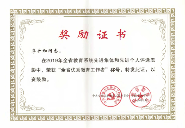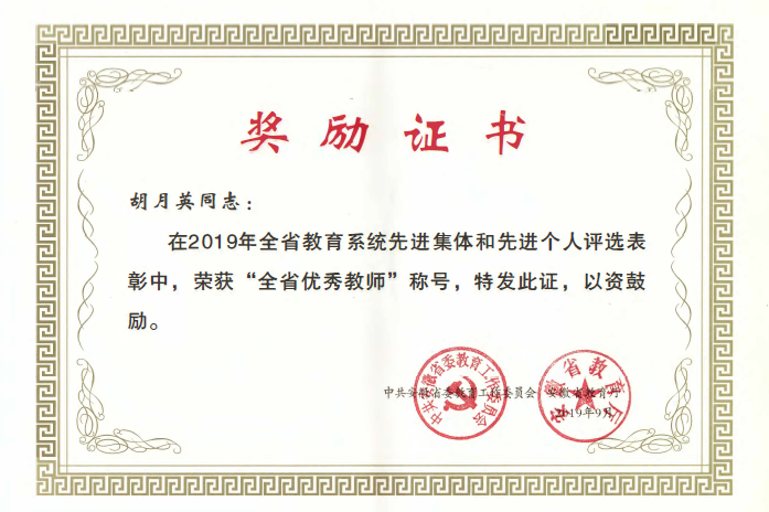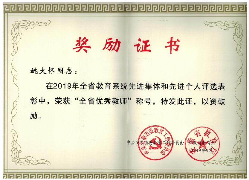 我校共有3名教师入围本次表彰,分别是安徽省优秀教师获得者胡月英、姚大怀老师,安徽省优秀教育工作者获得者李升和老师。(特约通讯员:常海军)