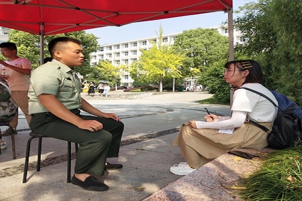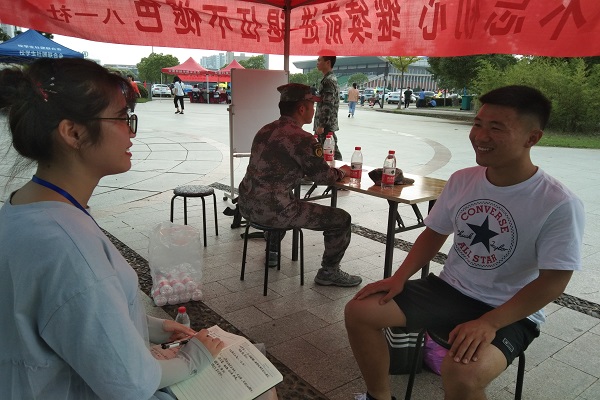 来自动物科学学院动物科学专业的黄俊,大一时候响应国家大学生入伍号召,经过层层选拔,到部队去“进修”。关于大学校园与军队的区别,他谈到,“学校跟部队的管理方式和严格程度不一,但我还会继续保持在部队中的自律。”黄俊说道:“八一社的成员大部分都是退伍军人,看到他们就莫名有一种亲切感,对于他们为我们提供的服务和帮助很暖心,很感动。他谈到,如果条件允许的话,他也会加入八一社跟他们一起为同学们提供服务。”