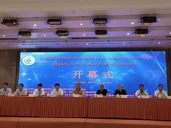 8月16日至19日,“中国畜牧兽医学会兽医内科与临床诊疗学分会2019年会员代表大会暨学术研讨会”在合肥顺利召开。此次会议由我校与安徽农业大学共同承办。来自中国农业大学、南京农业大学、西北农林科技大学、浙江大学、University of Calgary等多个高等院校、科研单位、畜牧兽医基层单位、兽药生产企业和管理部门的约350多名代表出席本次大会。我校党委委员、副校长郭亮,动物科学学院院长、研究生处处长李升和,省牛羊产业技术体系首席专家王立克等19人也参加了会议。郭亮代表学校参加开幕式并致欢迎辞,通报了会议筹备情况,向与会代表介绍了我校基本情况和发展态势,感谢相关单位领导专家对我校发展的关心和大力支持,并诚挚邀请与会领导专家莅临我校明年70周年校庆。