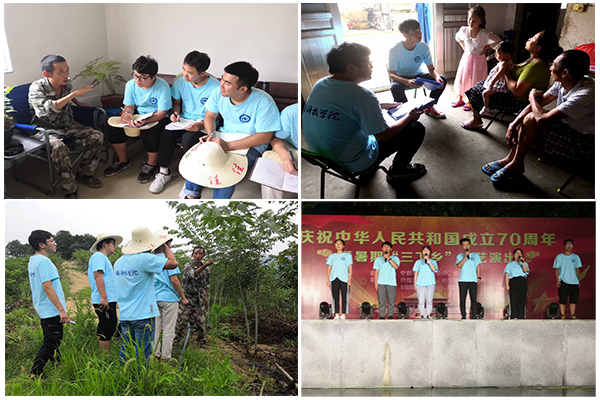 我校2019年大学生“三下乡”暑期社会实践以习近平新时代中国特色社会主义思想为指引,贯彻落实党的十九大和十九届二中、三中全会精神,引领教育广大青年学生在切实感受新中国成立70周年取得的巨大成就中增强“四个意识”、坚定“四个自信”、做到“两个维护”,鼓励大学生在志愿服务中增强责任感和使命感,在社会实践中受教育、长才干、做贡献,以实际行动投身打赢脱贫攻坚战,投身乡村振兴战略实施,把爱国情、强国志、报国行自觉融入新时代追梦征程。实践围绕理论普及宣讲团、历史成就观察团、依法治国宣讲团、科技支农帮扶团、教育关爱服务团、文化艺术服务团、爱心医疗服务团、美丽中国实践团等8个方面组建队伍,组建2支国家级重点团队,2支国家专项团队,10支省级重点团队,2支省级专项团队,25支校级重点团队深入全省各地一线开展社会实践活动。
