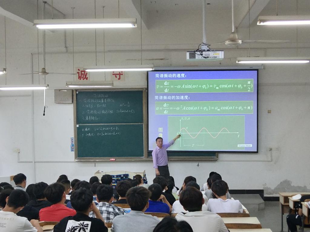 李勇老师讲授的课程是“大学物理——简谐振动”,他首先联系生活实例,导出课堂主题——简谐振动,借助动画演示解释“简谐振动”的定义,通过一步步推导公式,概括出“简谐振动”的基本特征并结合理论解释生活中的一些常见现象,整节课堂一气呵成、衔接得当、非常紧凑。李勇老师在授课过程中,新课引入生动,教学思路清晰,重点突出;能将理论与实践相结合,用通俗的语言讲解抽象的定义、定理;课件图文并茂,能够与视频等教学手段交互使用;讲解注重条理性,能针对学生的知识基础,准确把握授课的深浅;教学充满激情,讲解举例生动,对学生能循循善诱。整个教学活动中,课堂气氛活跃,学生兴趣浓厚,思维紧跟教师引导。