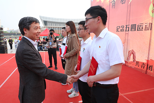 4月24日,为纪念五四运动100周年,我校广大团员青年欢聚一堂,在凤阳校区西区广场隆重开展“‘青春心向党 建功新时代’纪念五四运动100周年特别主题团日活动”。校党委书记蒋德勤,党委副书记韦文联,校党委委员、宣传(统战)部长卫胜出席主题团日活动,校党委部门领导,各学院党总支书记、副书记,学院团委书记以及青年团员代表,获表彰先进集体和优秀个人代表近千余人参加活动。