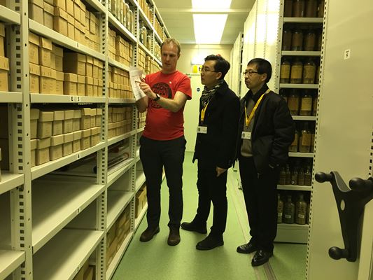 在洛桑研究所植物科学部博士后CAIHONG BAI的陪同下,詹秋文和郑甲成参观了Broadbalk长期定位试验基地,详细了解洛桑定位试验布局结构、土壤样品采集方式、数据收集整理等关键环节,后赴洛桑定位试验样品储藏室,与ANDY GREGORY教授深入交流,亲眼目睹洛桑120多年以来保存的土壤、肥料及作物秸秆等样品,了解120年以来不同处理定位试验中英国主要作物和园林草地产量、土壤微生物、肥料利用等变化数据,探讨未来作物高产优质育种重要策略。