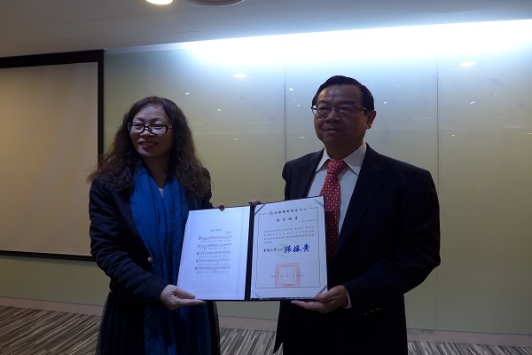 结训典礼上,台湾实践大学校长陈振贵为研修班12位学员颁发了“结业证书”。