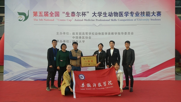 本次大赛共有来自南京农业大学、吉林大学、扬州大学等64所本科高校的近800名师生参加。比赛涵盖了动物医学专业的多项基本素质,分羊瘤胃切开术、病原菌检查与血凝试验、禽的病理剖检三个项目分别进行。经过激烈的角逐,最终,由我校动物医学专业2015级的路潇潇、丁晓东、欧元汉、王懂懂、贾莉等五位同学组成的安徽科技学院代表队在比赛中以严谨的态度、默契的配合和熟练的操作技能,获得本次大赛二等奖。