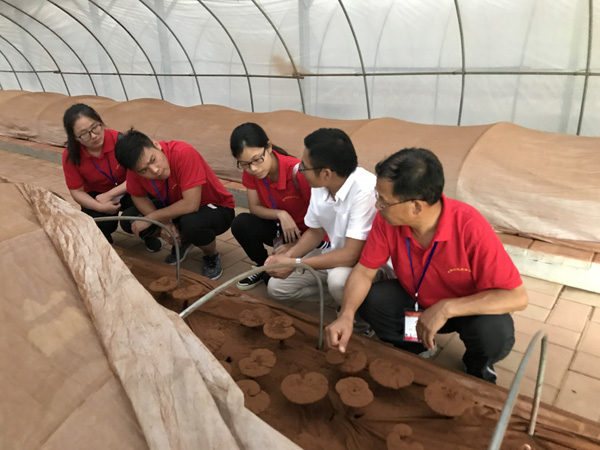 活动现场我校“精准扶贫:小岗村食用菌生态种植”项目与金寨县力源食用菌种植专业合作社第一个上台签约,并接受了六安电视台记者采访。活动结束后,团队成员到金寨县力源食用菌种植专业合作社灵芝生产基地进行技术指导,并对项目深度合作进行了洽谈。