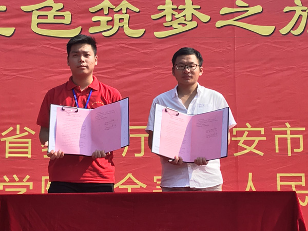 7月30日至7月31日安徽省“青年红色筑梦之旅”(金寨站)现场对接活动在金寨县红军广场举行。我校“精准扶贫:小岗村食用菌生态种植”和“山水雕刻设计”两个团队队员以及来自合肥工业大学、安徽大学、安徽农业大学等省内45所高校的84个创新创业团队代表及企业家代表参加了对接活动。