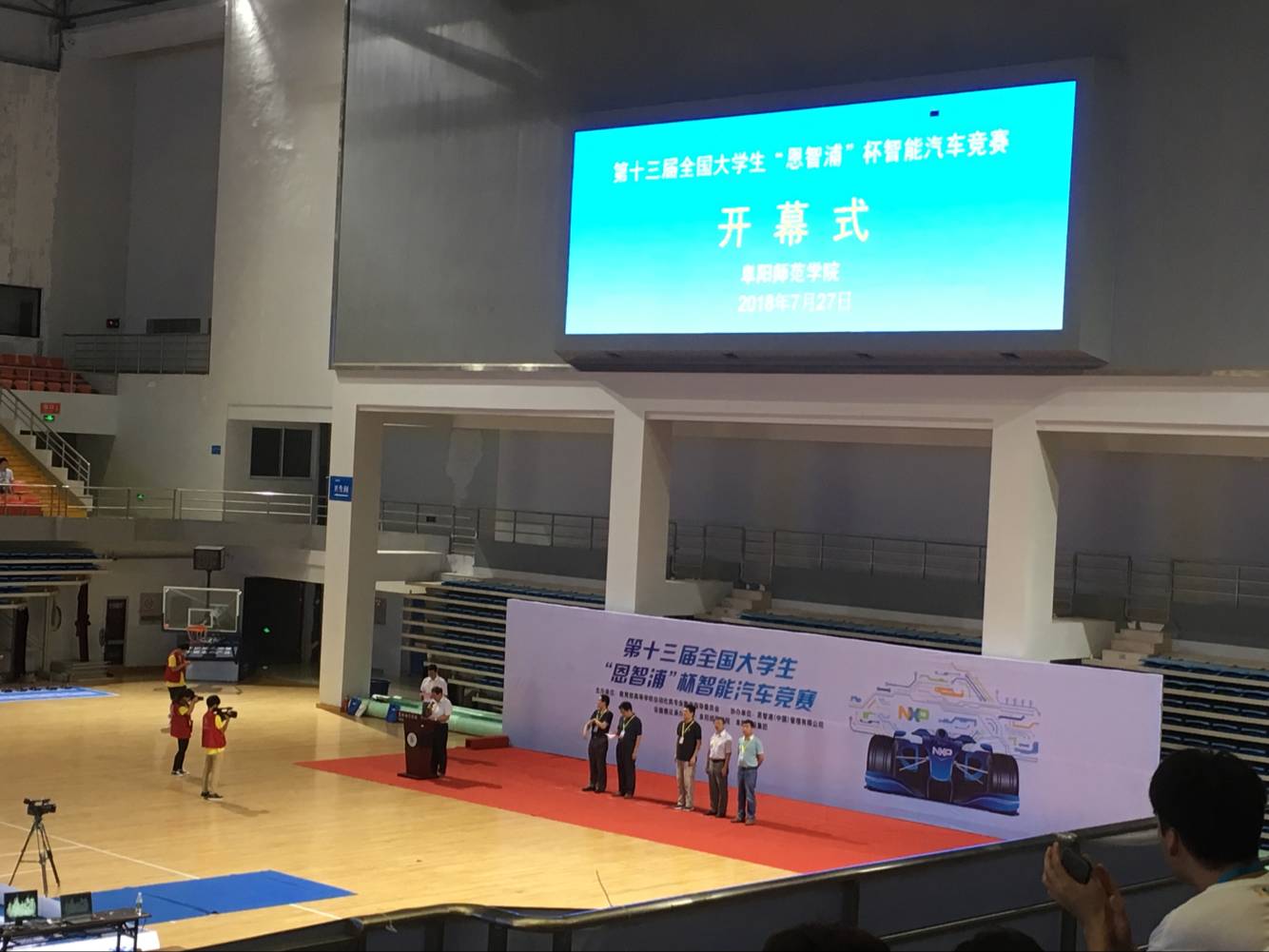 7月25日-28日,由阜阳师范学院承办的第13届全国大学生“恩智浦”杯智能汽车竞赛安徽赛区比赛在阜阳市体育馆举行,来自中国科学技术大学、安徽大学、合肥工业大学、安徽科技学院等省内43所高校的309支队伍共995名大学生参加了此次竞赛。我校有六支队伍共18人参加比赛。经过激烈角逐,最终获得二等奖2项、三等奖3项和优胜奖1项。