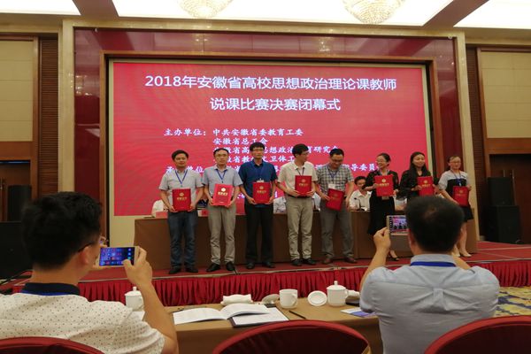 6月26日至27日,安徽省2018年高校思想政治理论课教师说课比赛决赛在安徽师范大学举行,比赛采取现场说课和现场答疑形式进行,我校马克思主义学院盛青广老师参加了此次比赛决赛,并以优异成绩获得《毛泽东思想和中国特色社会主义理论体系概论》组二等奖。