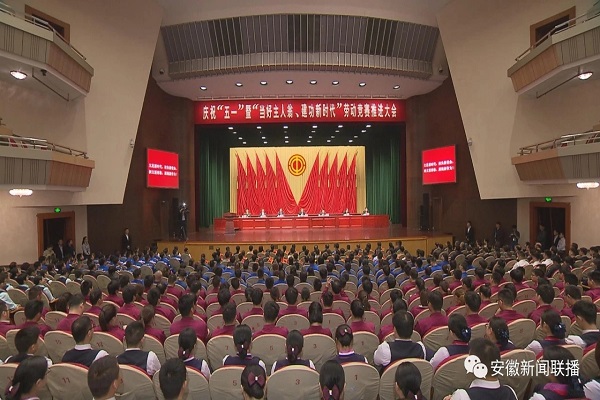李国英指出,新时代呼唤新担当,新起点要有新作为。要大力弘扬劳模精神,对标模范典型,争做“江淮工匠”,在振兴实体经济、推动高质量发展中显身手、建新功。要充分激发创造活力,大力实施人才强省战略,加快推进技工大省建设,着力创优“四最”营商环境,让一切创新智慧充分涌流、创造活力竞相迸发。要切实保障职工权益,构建和谐劳动关系,维护职工合法权益,完善劳动保护机制,动员全省广大职工群众勤勉工作、锐意进取、奋力拼搏,为全面建成小康社会、加快建设现代化五大发展美好安徽作出新的更大贡献。