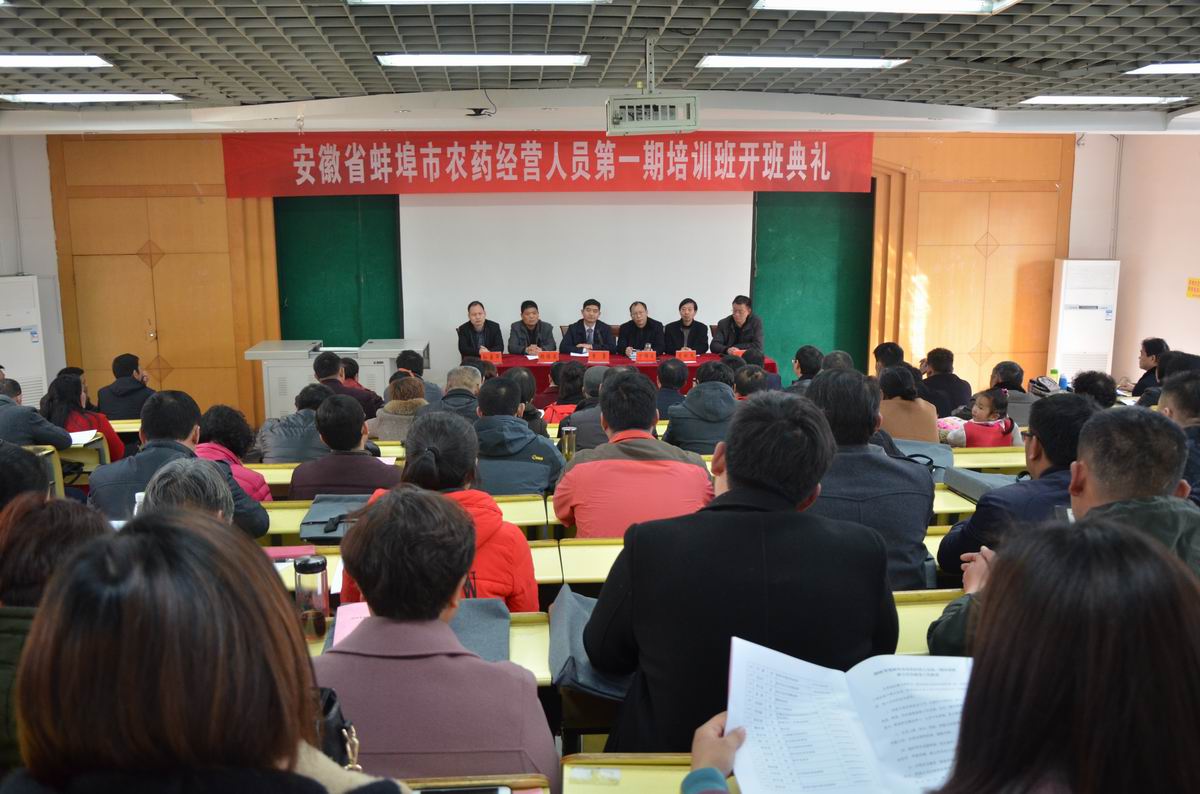 3月11日下午2点,由蚌埠市农学会和我校继续教育学院联合举办的2018年度蚌埠市农药经营人员培训班,在学知楼216教室举行第一期开班典礼。安徽省植保总站农药管理科科长宁伟文、蚌埠市农业林业委员会副主任李勇、蚌埠市农业技术推广中心主任孙善军、蚌埠市农学会会长、我校农学院院长詹秋文、继续教育学院副院长杨维来、张敬强及120位学员参加了开班典礼,典礼由张敬强主持。