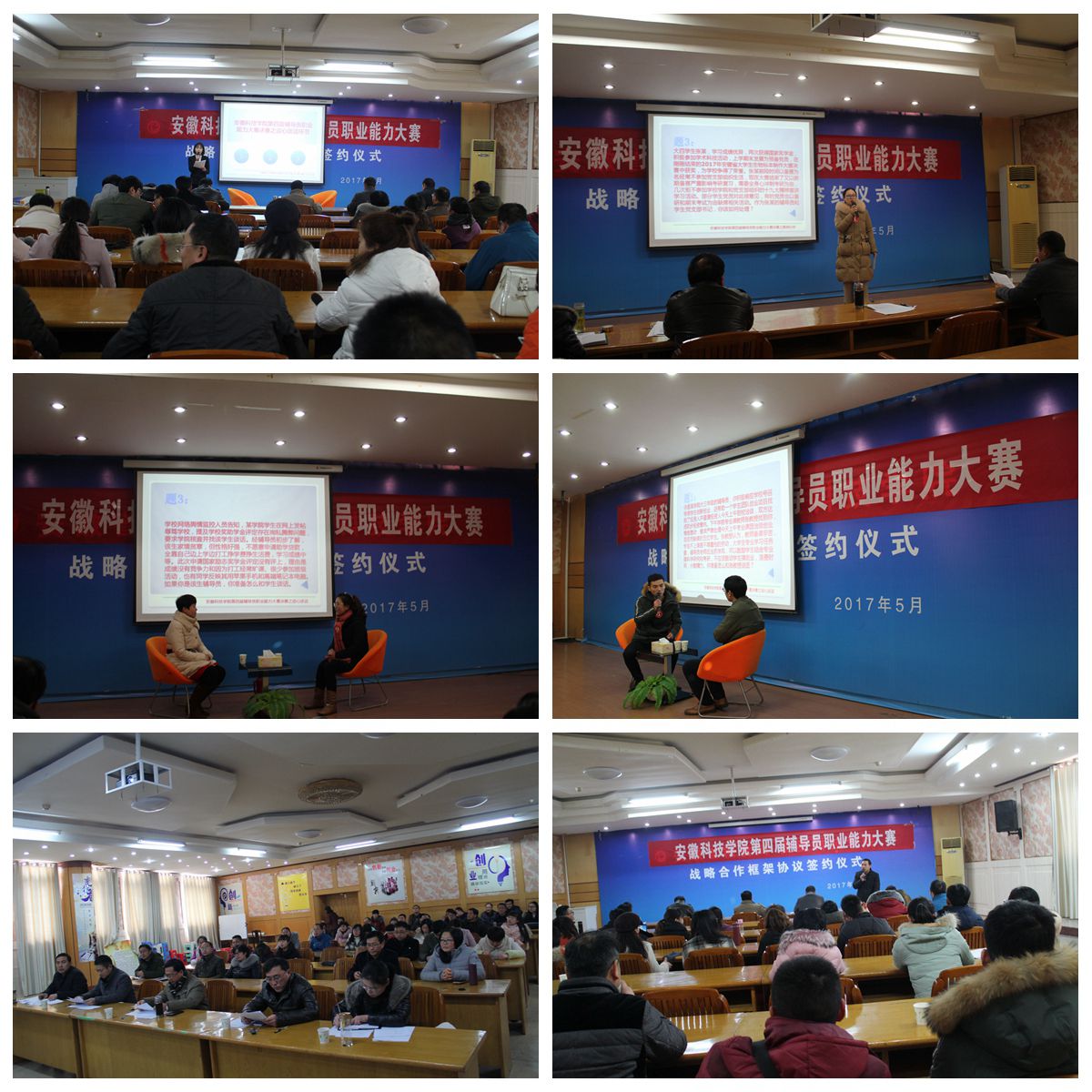 1月17日下午,我校第四届辅导员职业能力大赛决赛在老图书馆二楼招聘就业大厅落下帷幕,经过预赛选拔,9名辅导员参加了当天决赛,各学院分管书记以及全体专职辅导员观摩比赛。