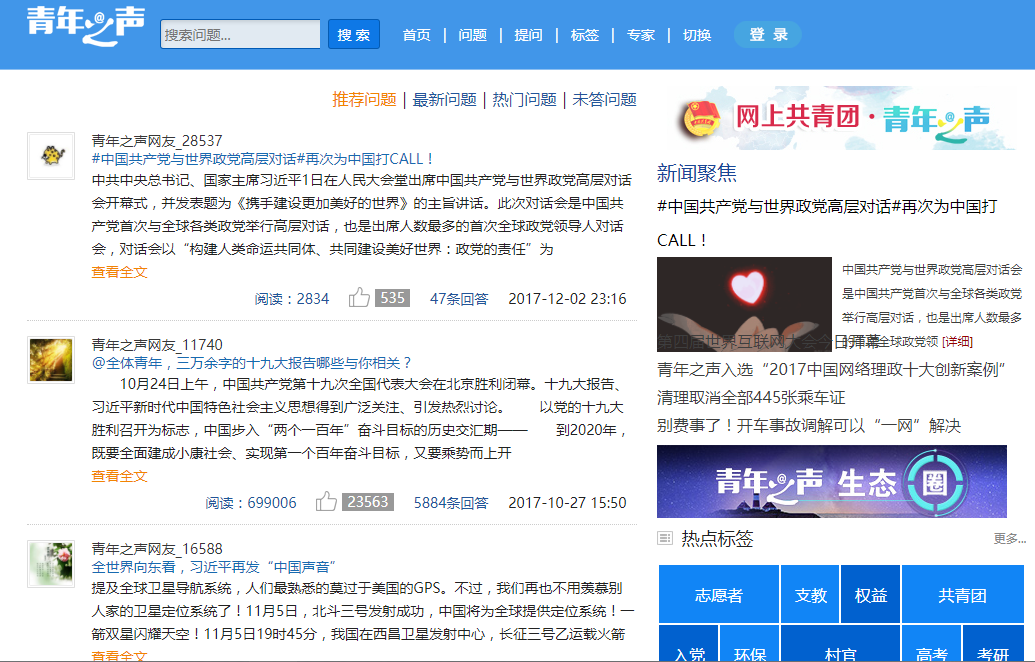 加强网上共青团建设,利用青年之声等平台开展团建工作,注册学生12000余人,回答解决青年问题807条。(特约通讯员:张聪)