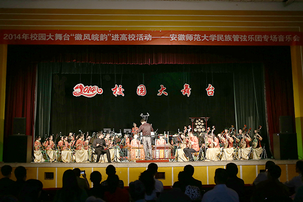 开展高雅艺术进校园活动。邀请国家京剧院、安徽省黄梅剧剧院、安徽省话剧团等专业团体来校演出8场,让更多的学生接受高雅文化的熏陶,培养欣赏美和创造美的能力,提高广大同学的人文素养和艺术修养。