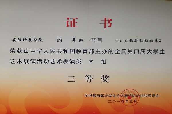 “中都鼓韵”原创花鼓曲目5支,传承传统花鼓曲目15支,原创舞蹈10个,校内连续5年校内演出,先后应邀赴滁州大剧院、安徽大剧院举办专场演出,应邀赴湖南卫视演出,获得全国全省文化文艺奖项18个。