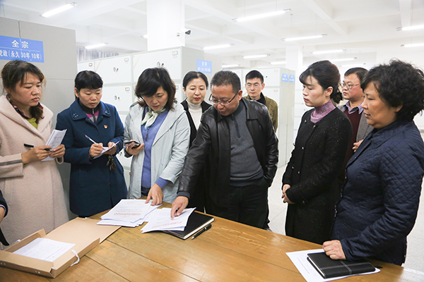 党委副书记、校长李震接待了检查组一行,代表学校对检查组的到来表示热烈欢迎,并简要介绍了学校基本情况以及档案工作开展情况。随后,检查组对照档案行政执法检查指标体系认真查阅了相关支撑材料,对学校综合档案室进行了实地检查指导,并参访了校史馆。
