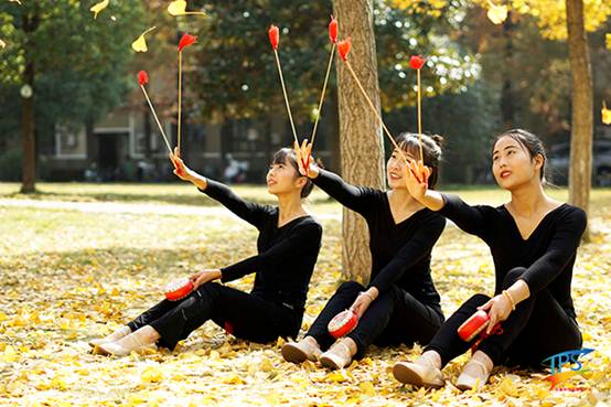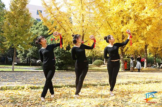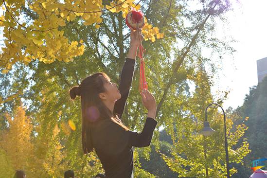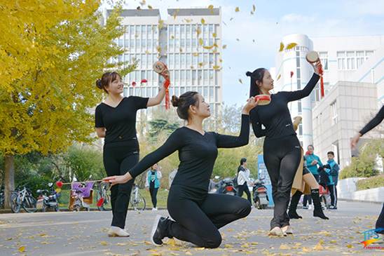 碧云天,黄叶地。银杏树下,一道道倩影起舞,顾盼生姿。皓腕轻抬,一声声花鼓悦耳,如歌如诉。