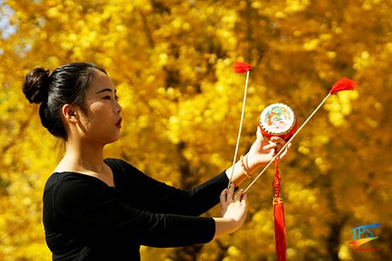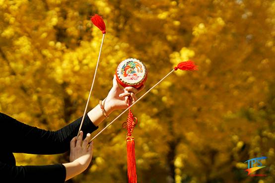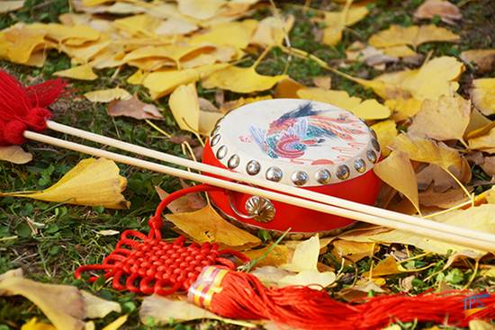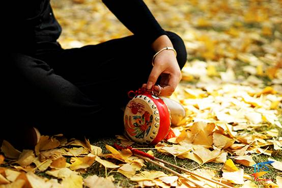 三寸花鼓面,一尺半竹根,从明朝到今朝。悠扬花鼓声中,片片银杏叶纷飞。虽然只有小巧双条鼓,却能敲响一片天。
