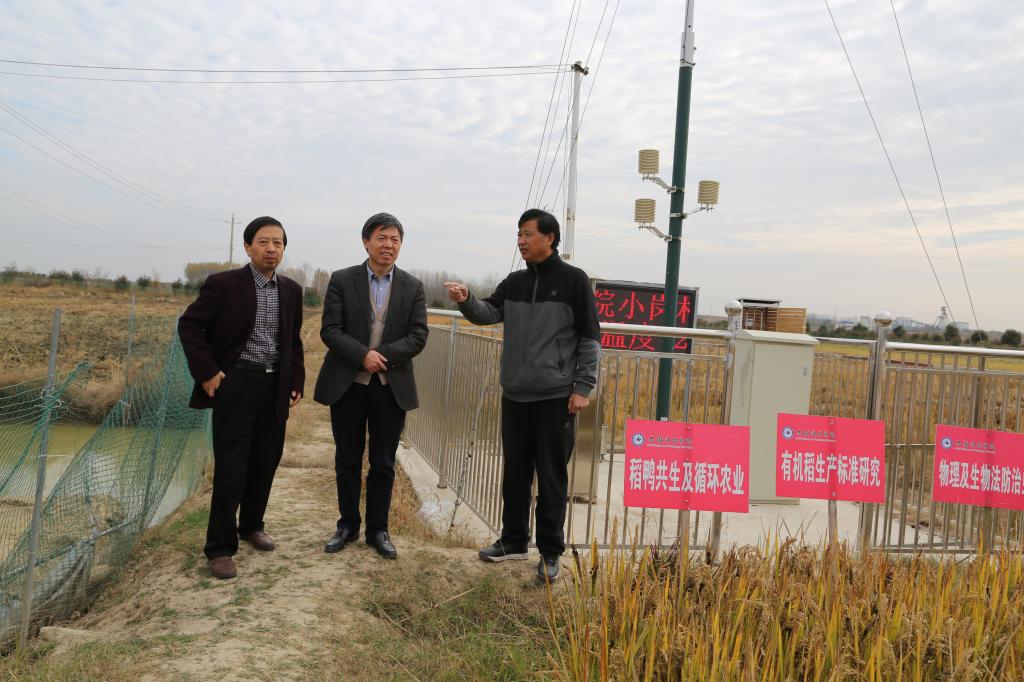 11月11日上午,校党委书记蒋德勤,党委委员、副校长汪建飞在农学院院长詹秋文、研究所所长张从宇的陪同下考察指导我校小岗村现代生态农业研究所。