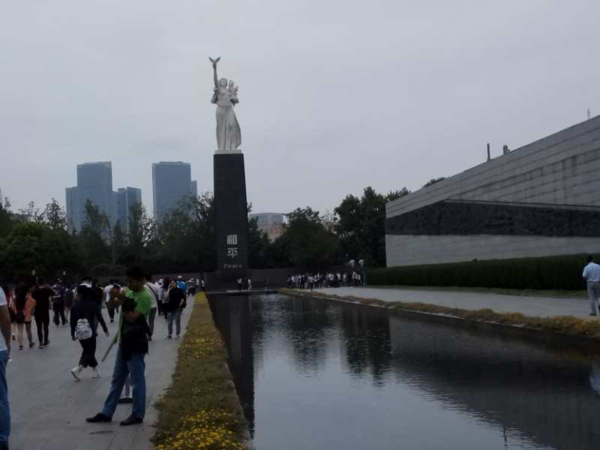1937年的12月13日,日军攻占南京后,在长达六周的时间内,大肆屠杀放下武器的中国士兵和手无寸铁的平民百姓,遇难者达30万人。进入侵华日军南京大屠杀遇难同胞纪念馆,犹如一张黑色的帷幕在师生们的视野中铺展开来,一级一级的台阶好像将人们重新送入了八十年前的炼狱一般,师生们被以生与死、悲与愤为主题的悲苍景象深深震撼了。残忍的日寇在短短的几个星期用枪杀、刀砍、毒气、活埋、水淹等残忍的酷刑杀死了30万人。一路走来,血战光华门、南京沦陷、日军在南京的焚烧与破坏、南京保卫战......这些场景历历在目,“万人坑”遗址更是让人久久不能释怀。八十年后来到此处,仿佛还能嗅到空气中弥漫着屠杀的血腥气,仿佛还能听到被屠杀时手无寸铁人们的哭声,还能看到一个个为人父人妻人母人子的人倒在血泊中。这场日本军国主义泯灭人性的战争,给中国人民带来了深重的灾难!刻骨铭心的历史永远不能忘记!历史的悲剧绝不能重演!