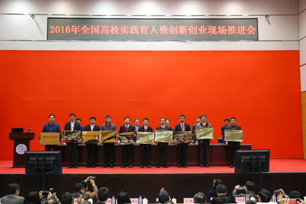 会上,与会领导为全国第二批“全国高校实践育人创新创业基地”共40家单位授牌。我校是这一批安徽省唯一授牌单位。