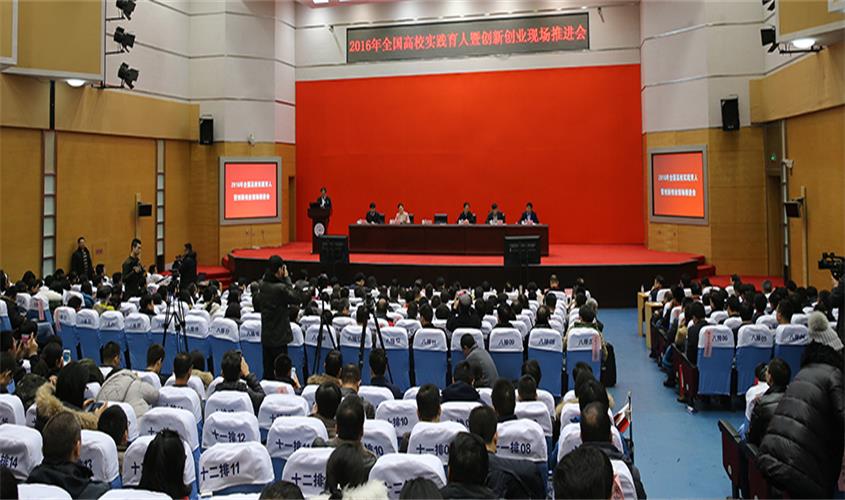12月23日,由国家教育部、人力资源和社会保障部和国务院国资委主办,吉林大学承办的全国高校实践育人暨创新创业推进会在吉林大学东荣会议中心召开。教育部思想政治工作司副司长张文斌,人社部就业促进司副巡视员尹建堃,国务院国资委宣传局副局长韩天,吉林省教育厅副厅长、省委高校工委副书记苏忠民,吉林大学党委书记杨振斌、常务副校长陈岗、副书记冯正玉等出席会议。教育部、人社部、国资委相关司局的处室负责人,全国高校实践育人创新创业基地所在单位负责人,各省区市党委教育部门负责人,部分高校、行业、企业代表参加了会议。安徽省教育厅思政处副处长王后林,我校党委委员、副校长郭亮参加会议。会议由张文斌主持。