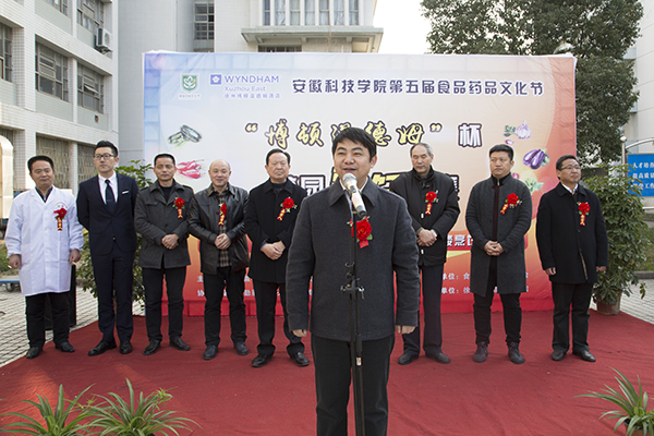 畅想青春,享受生活。由安徽省烹饪协会、安徽科技学院食品药品学院主办,食品药品学院学生会承办的安徽科技学院第五届食品药品文化节系列活动之“博顿温德姆”杯校园烹饪大赛于12月10日在力行楼烹饪实验室举行。安徽省烹饪协会秘书长马邦山,安徽省非物质文化遗产徽菜传承人、中国烹饪大师孙成应,徐州博顿温德姆酒店人事经理闫丞鹿,合肥市经贸旅游学校烹饪教研组组长黄雷鸣,合肥孙府大院总经理、中式烹调高级技师詹俊芳等受邀担任本次比赛评委。