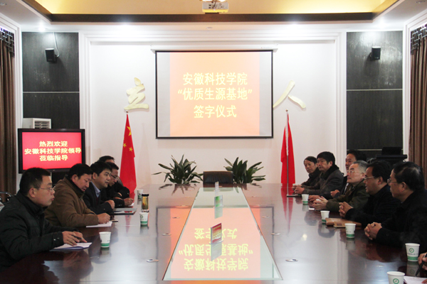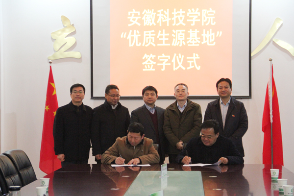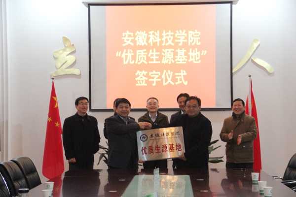 建筑学院院长张远兵分别与淮南第五中学校长曹培、寿县第一中学校长王文永签订《安徽科技学院优质生源基地协议书》,汪建飞为优质生源基地授牌。