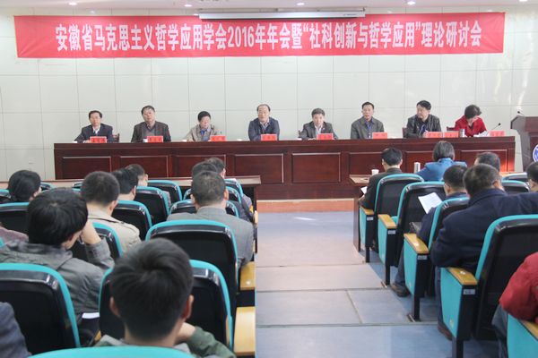 11月4日至5日,安徽省马克思主义哲学应用学会2016年年会暨“社科创新与哲学应用”理论研讨会在我校举行。安徽科技学院党委书记蒋德勤教授,学会会长、安徽工业大学党委书记刘新跃教授,学会常务副会长、安徽电气工程职业技术学院原院长陈祥明教授,学会副会长、滁州学院原党委副书记倪阳,学会副会长、合肥工业大学马克思主义学院院长黄志斌教授,学会副会长、秘书长、安徽农业大学马克思主义学院院长黄洪雷教授,学会副会长、合肥工业大学任雪萍教授,学会副会长、安徽科技学院马克思主义学院院长王有炜教授等出席开幕式并在主席台就坐。来自全省高校、社科院所、党政机关的60多位专家学者参加了此次会议。开幕式由黄洪雷主持。