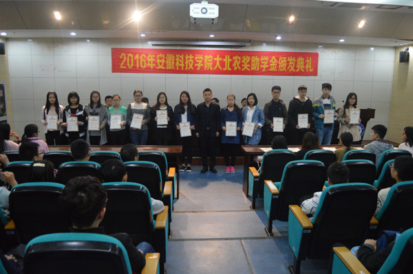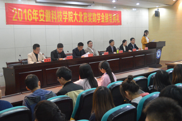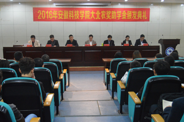 10月15日上午,2016年度大北农奖助学金颁发典礼在新图书馆第一报告厅隆重举行。校党委委员、副校长黄远友,大北农集团金色农华种业股份有限公司苏皖区副总经理郑明光出席典礼并讲话。金色农华水稻集团创业人才部经理梁浩琪,金色农华苏皖区管理部经理朱囡囡,农学院党政领导等出席典礼。仪式由农学院党总支书记何世潮主持。
