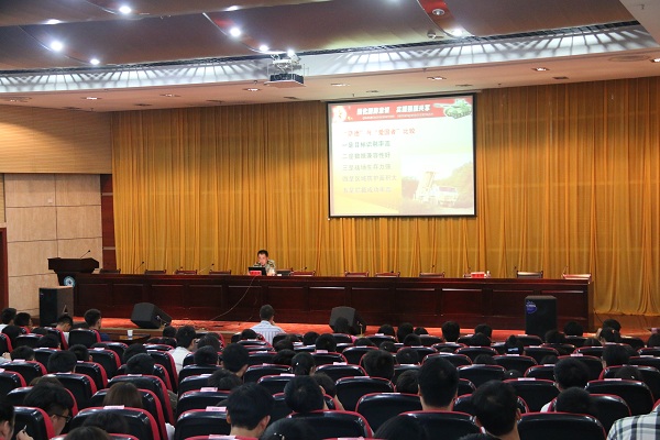 报告中,郑少华结合南海仲裁、“萨德”导弹系统部署、“墨子号”量子通信卫星发射等热点话题,分析并指出强化国防意识是维护国家安全的现实需求,具体表现在三个方面,一是某些国家对我国的战略遏制和围堵的力度加大,涵盖政治、经济和军事等领域;二是我国维护领土、主权和海洋权益任务艰巨;三是地缘政治的复杂态势对我国国防安全影响较大,多股势力直接影响我国稳定大局。郑少华指出,强化国防意识是历史清醒的昭示,是每个公民应尽的责任,青年学生骨干应当增强忧患意识,充分认识国防安全的重大意义,增强爱国情操,正确认识世界和认识现实,努力学习科学文化知识,掌握国防知识,积极参加军事训练,自觉履行国防义务。郑少华强调,强国兴军,青年有责,青年学子要树立自信,积极应对政治、经济和军事层面挑战。