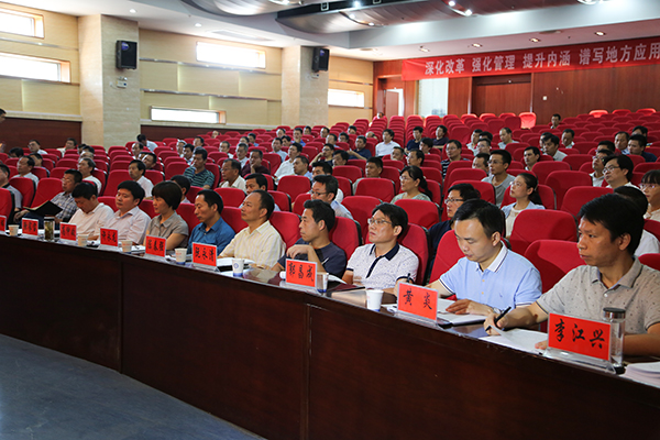 省委第二巡视组副组长姚俊、潘友华及巡视组成员,安徽科技学院党委领导班子成员、十八大后退休的学院原领导班子成员及全院处级以上领导干部参加了会议。