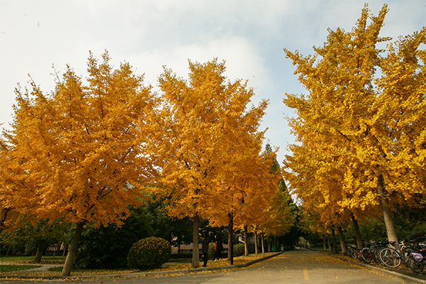 银杏树叶黄了,像是披上了一层金装,我要去告诉小伙伴。