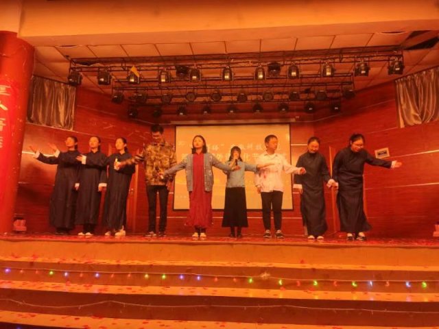 伴随着《少年中国说》那慷慨激昂的朗诵声中,晚会进入了第一篇章:“七十周年,感谢遇见”。一场精彩的话剧《红岩》,让在场的师生感受到了革命先烈为国家舍生取义、大义凛然的情怀,在场的全体师生共同唱响了别样的《我和我的祖国》,以表达对祖国母亲的爱和美好祝福。