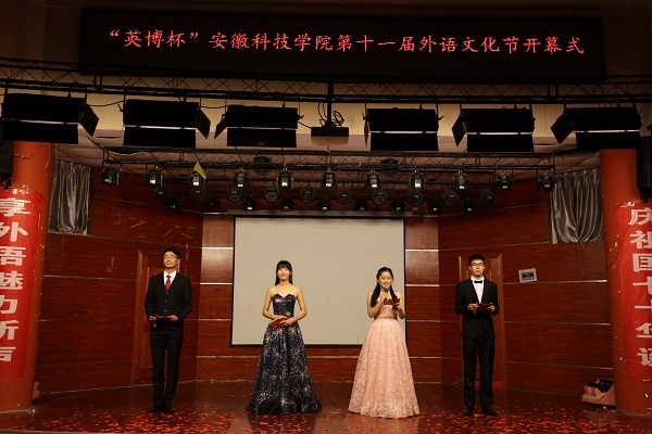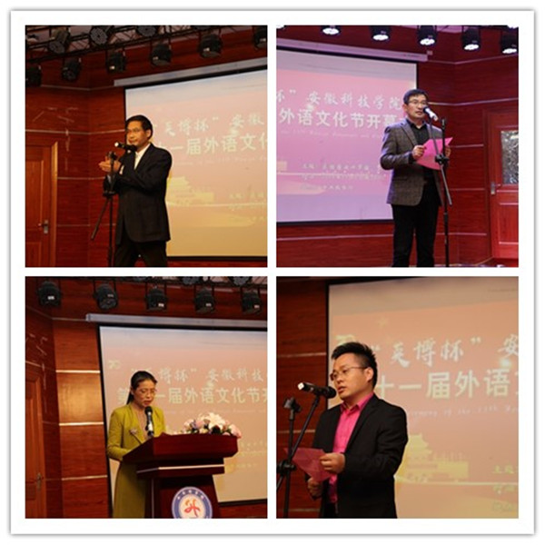开幕式上,工作人员宣读校国际交流与合作中心发来的贺信。外国语学院分团委书记陈慧中宣读了《安徽科技学院第十一届外语文化节实施方案》。
