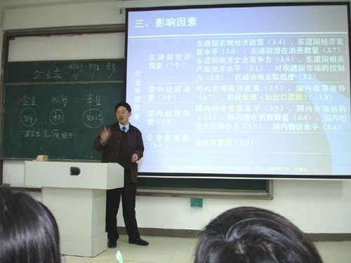 为使同学们提高专业素养,了解最新科研成果,3月27日晚,安徽财经大学人事处处长、博士、硕导冯德连教授应管理学院、科研处邀请,在新知楼B座304作了题为“中小企业外向国际化成长”的学术报告。管理学院院长鲍步云出席并主持报告会。