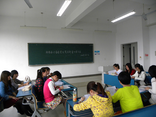 5月7日下午,财经学院财务会计教育学生党支部在新知楼A303开展本学期第五次集中学习活动,支部全体在校生党员参加了会议,会议由党支部书记薛枫主持。