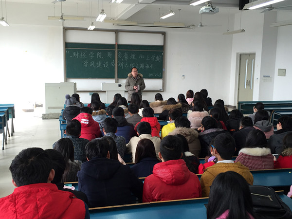 会上,各班主任首先分别从学习成绩、考风考纪、课堂学风、考勤情况、考证考级、活动情况、奖惩情况、骨干带头作用等方面,对上学期班级学风建设情况进行全面分析总结,提出本学期班级学风建设的目标和具体措施;其次,对“学风优良宿舍”、“学习进步之星”提出表扬,要求“学风优化宿舍”及不及格同学认真分析原因,并制定具体切实可行的整改措施;最后,优秀学生代表上台分享了学习经验及方法,建议同学们端正学习态度,把握学习重点,统筹时间安排,提高学习效率。