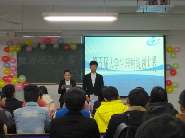 11月28日下午,由本院分团委主办,学生社团联合部、会计学习与交流协会承办,以“培养学生理财能力,提高同学理财意识”为主题的第五届大学生理财规划设计大赛在求知楼B208教室成功举办。财务管理系老师李娟、冯晓玮、财经学院社联主席李强、管理学院社联副主席张梦、大学生理财协会会长谢鹏担任比赛评委。
