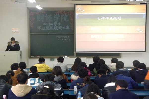 为帮助广大学生树立学业发展规划理念,引导大学生以科学的方法规划自己的学业与发展目标,11月28日下午,我院于新知楼B301举办了2015级学生学业发展规划大赛。管理学院学生会主席鲍闪闪、外国语学院学生会主席汪鹏、生命科学学院学生会主席赵马磊、化学与材料工程学院学生会主席吴航标、财经学院学生会学习部部长夏云青担任本次大赛评委。