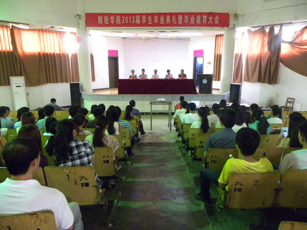 6月6日下午,财经学院2013届学生毕业典礼暨毕业教育大会在学术报告厅隆重举行。财经学院院长鲍步云、党总支书记骆海邦、党总支副书记王振其、党总支秘书兼团总支书记韦乃学、教学秘书王旭东及毕业年级辅导员、班主任出席毕业典礼。典礼由骆海邦主持。