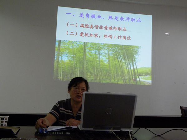 王教授的报告内涵丰富,深入浅出。她以“静下心来教书,潜下心来育人,努力做学生的良师益友”为题目,结合多年教学实践经验和教学体会,从四个方面进行了阐述:一是要爱岗敬业,热爱教师职业;二是要静心教书,认真做好教师工作;三是要潜心育人,做学生的良师益友。